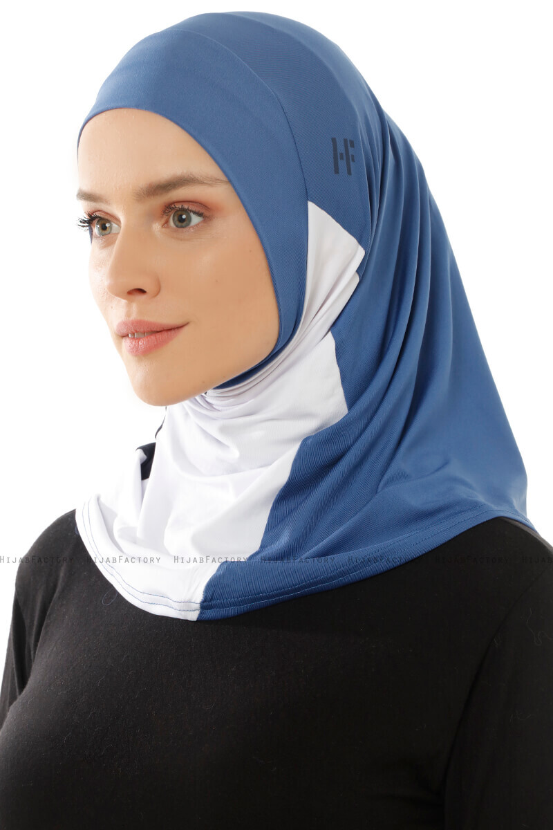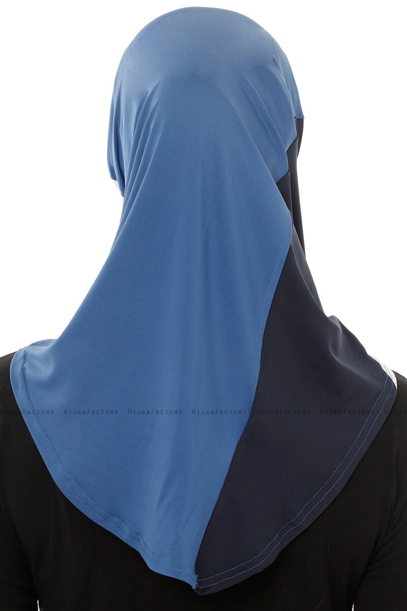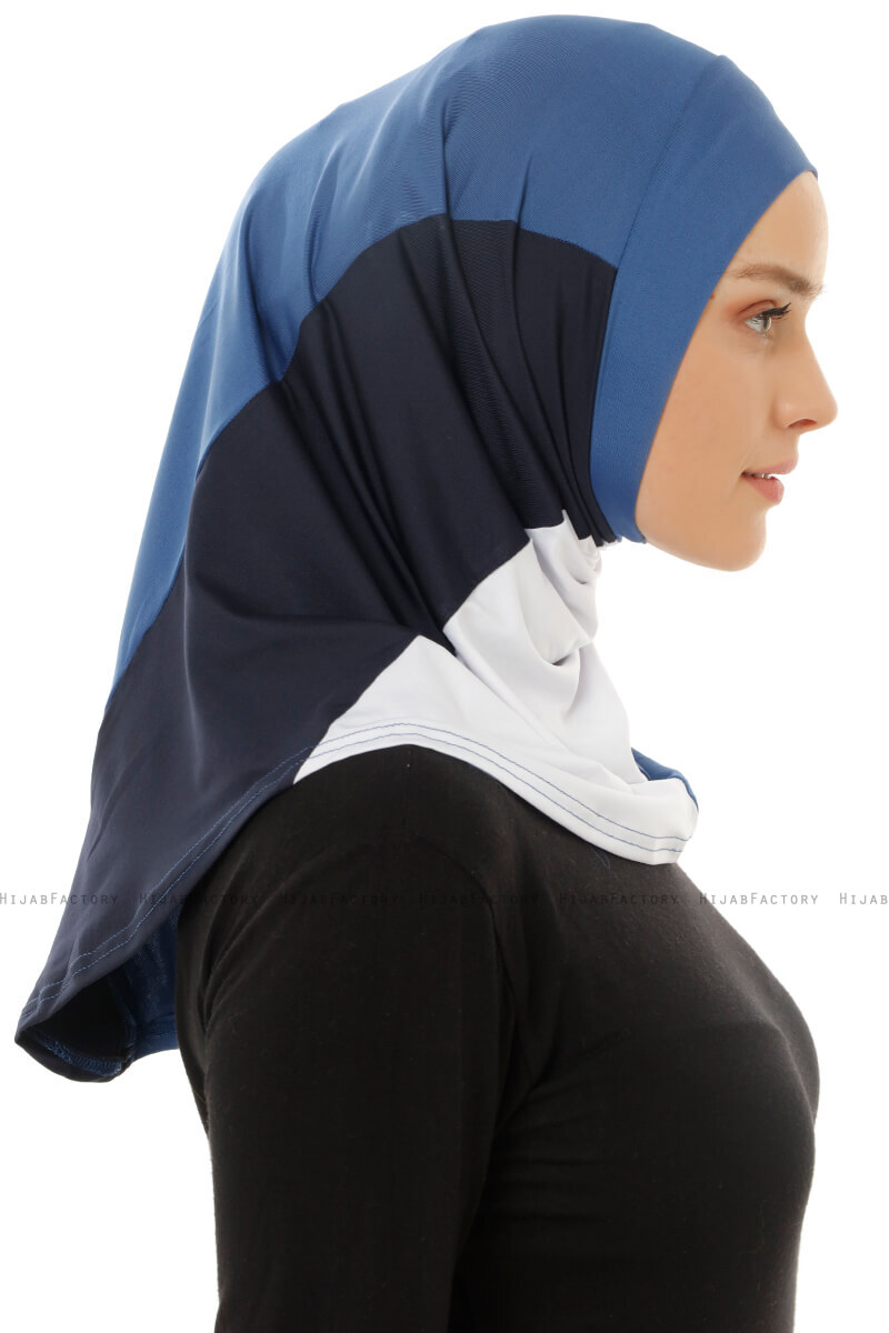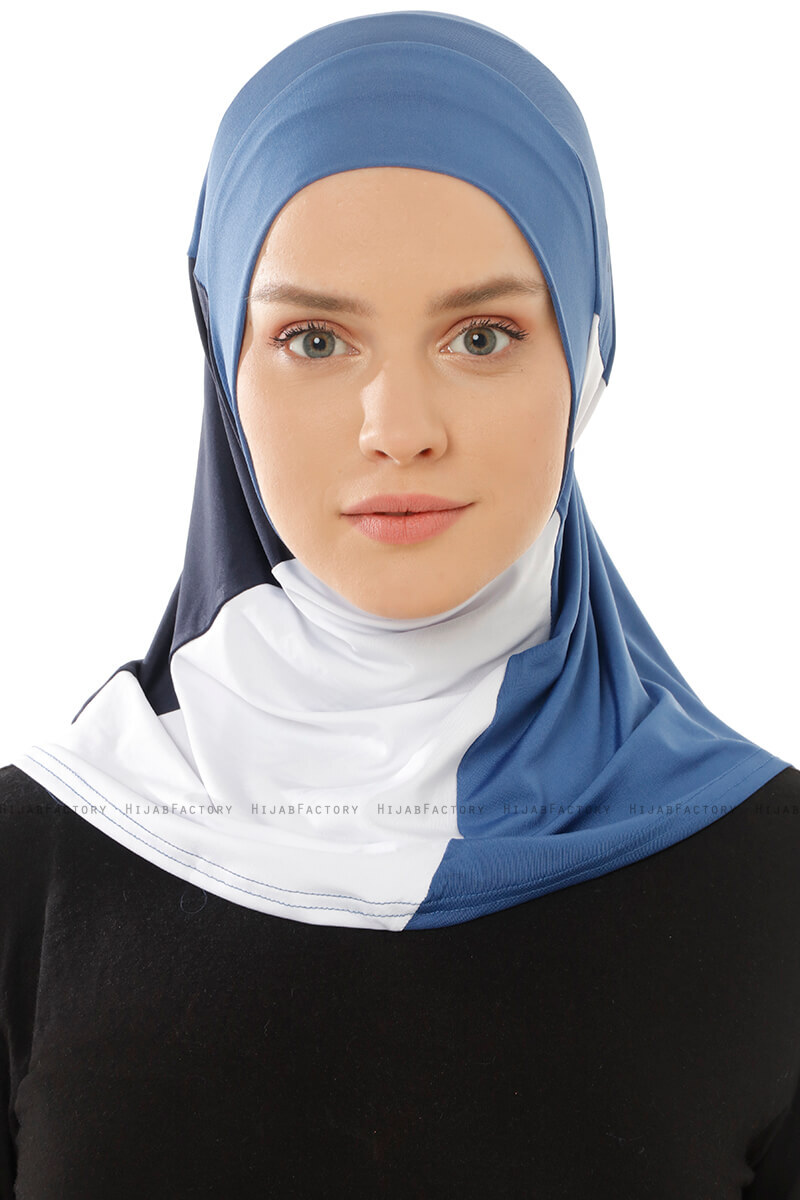 - Farge: Indigo & Hvit & Marineblå- Materiale: 90% Polyester 10% Elastan- Vedlikeholdsråd: HåndvaskRenkli Sport Micro Hijab - Made In Turkey