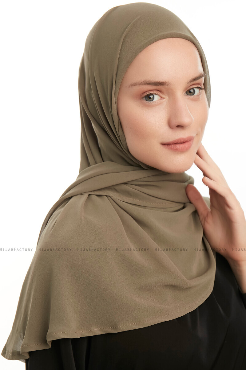 Eylem - Olivengrønn Praktisk One Piece Chiffon Hijab Fra Ecardin.Chiffon-hijab i ett stykke. Med underskjerf av viskose.
