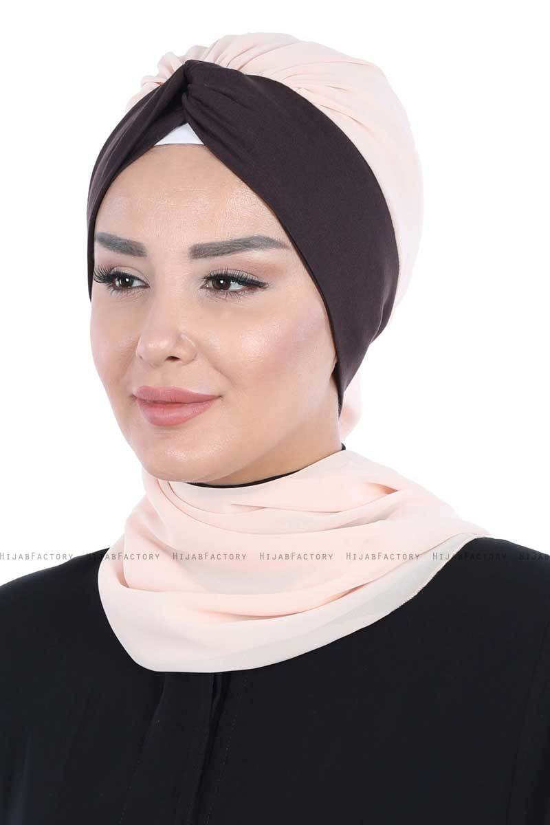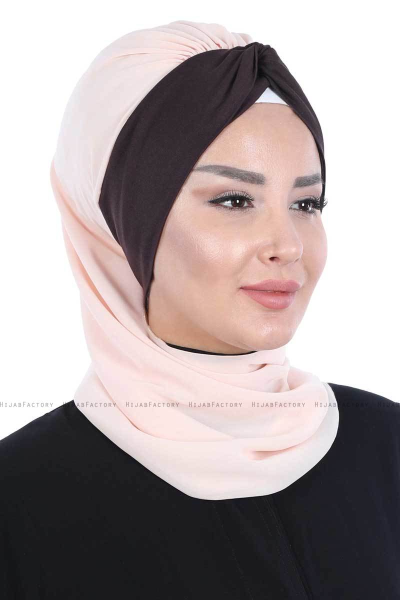 Gill - Beige & Brun Praktisk One-Piece Chiffon Hijab Fra Ayse Turban.