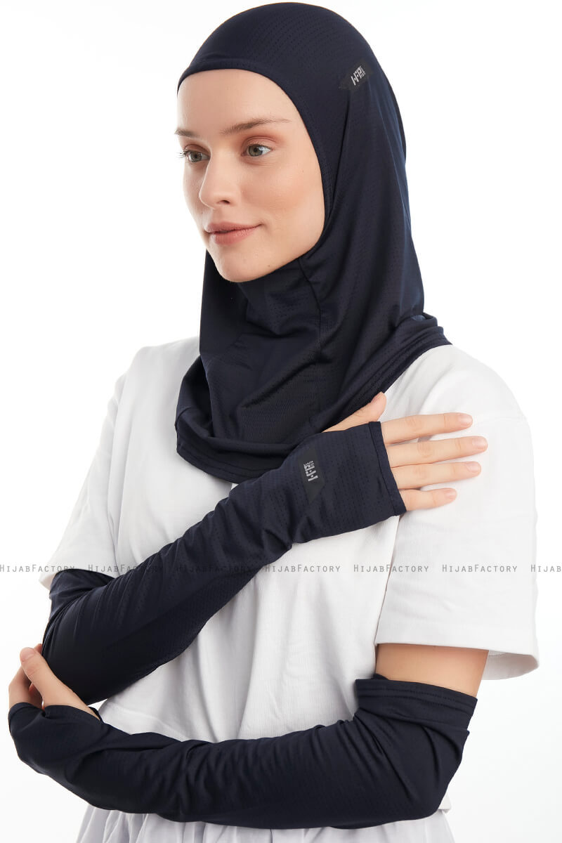 Bayda - Svart Pro Sport Hijab Set.Sett med 1 hijab og 2 armer.