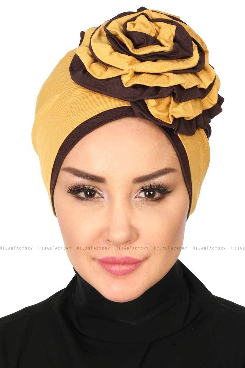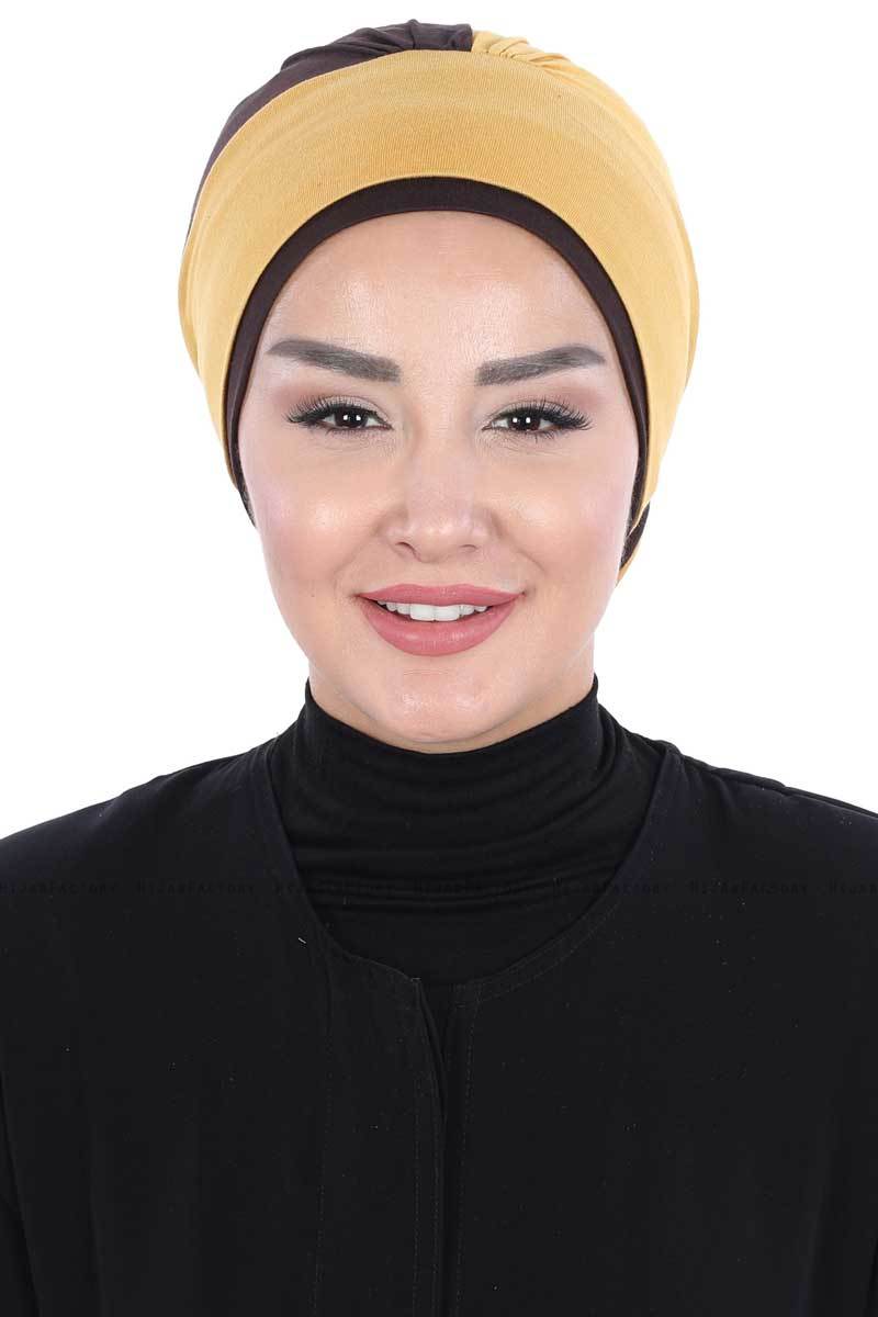 Clara - Sennepsgul & Brun Bomulls Turban Från Ayse Turban.